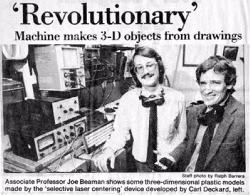 In 1988, Carl Deckard at the University of Texas filed the patent for Selective Laser Sintering (SLS) technology which worked by fusing powders instead of liquid, with a laser.