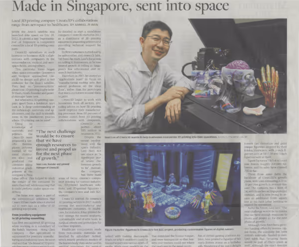 Creatz3D began to work with businesses from all sectors, providing advice on how 3D printing could improve their manufacturing processes. Now, 60 per cent of revenue comes from 3D printing collaborations with companies. Creatz3D reported about S$5 million in revenue in 2021.