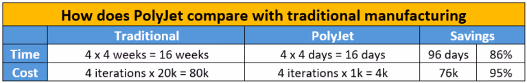 By integrating 3D printing into their workflow, Sensocore achieved 86% time savings and 95% cost savings — producing fully functional parts within four days instead of weeks. The new workflow allowed:
