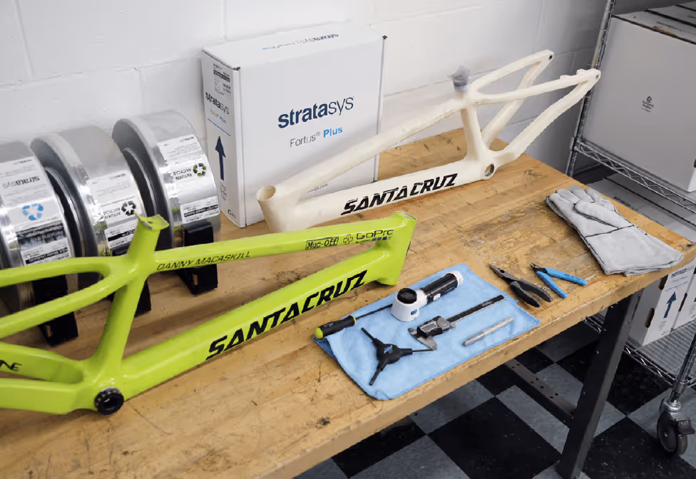 Santa Cruz Bicycles produces high-performance bicycles beloved by mountain biking enthusiasts. To accelerate R&D, they adopted a Stratasys Fortus 450mc printer.