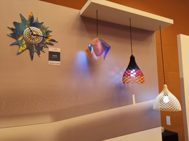 In line with this year’s theme, the potential of furniture 3D printing designing was also demonstrated with a modern living concept area with several 3D printed parts utilizing FDM and PolyJet technologies such as vase, plate, mug, lamp, clock, LED lights, and more on display, some of which were sanded and polished to show their immense potential.