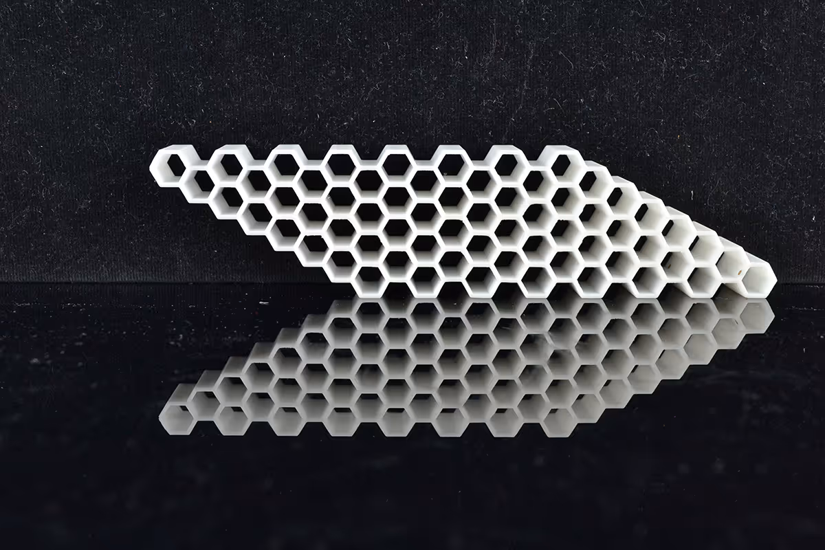 Technical ceramics consists of a high-viscosity mixture of fine ceramic powder and binder. This material is carefully deposited layer by layer to build a part using Stereolithography (SLA) technology. Once printed, the "green" part undergoes debinding and sintering to remove the binder and densify the ceramic, resulting in a fully dense, high-strength component.
